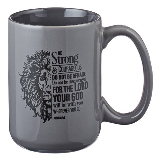 “Have I not commanded you? Be strong and courageous. Do not be afraid; do not be discouraged, for the Lord your God will be with you wherever you go.” Joshua 1:9Read the encouraging words from Joshua 1:9 on the Be Strong Coffee Mug every time you sip your morning cup of coffee or tea. A thoughtful Father’s Day, anniversary, or Christmas gift, the Be Strong Coffee Mug will keep him confident along his faith journey and full of confidence that the Lord is with him wherever he goes. Share the gray coffee mug with your family and inspire them to take the words from Joshua 1:9 to heart.This gray Joshua 1:9 Coffee Mug is made of ceramic. The image of a lion is also displayed on the left side of the Bible verse on the ceramic coffee mug.Capacity: 15 fl oz (450ml)Ceramic MugMatching Gift Box Included