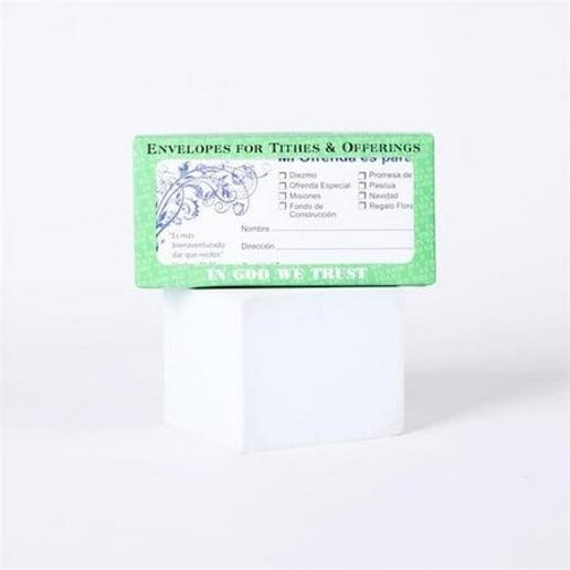 Swanson Christian Supply 349436 Blessed to Give Spanish Offering Envelopes come in a pack of 100. These envelopes are designed with a 'Blessed To Give' theme and feature text in Spanish, making them ideal for church offerings and donations. Each envelope is durable and provides a convenient way for congregants to contribute to the church community.